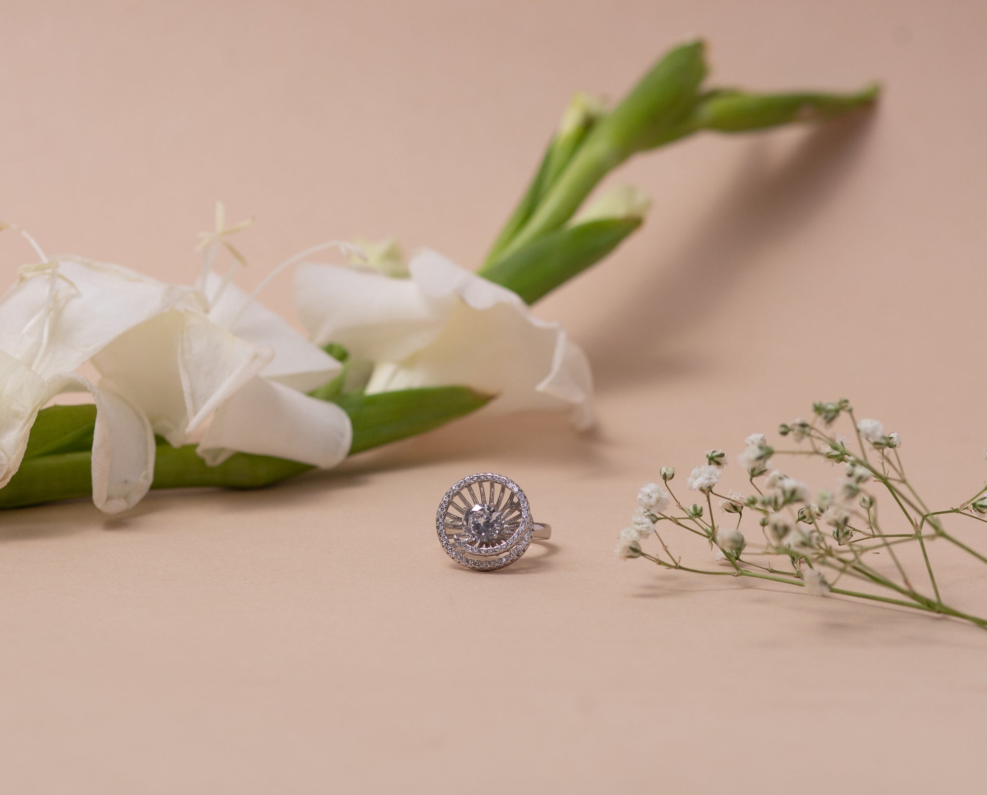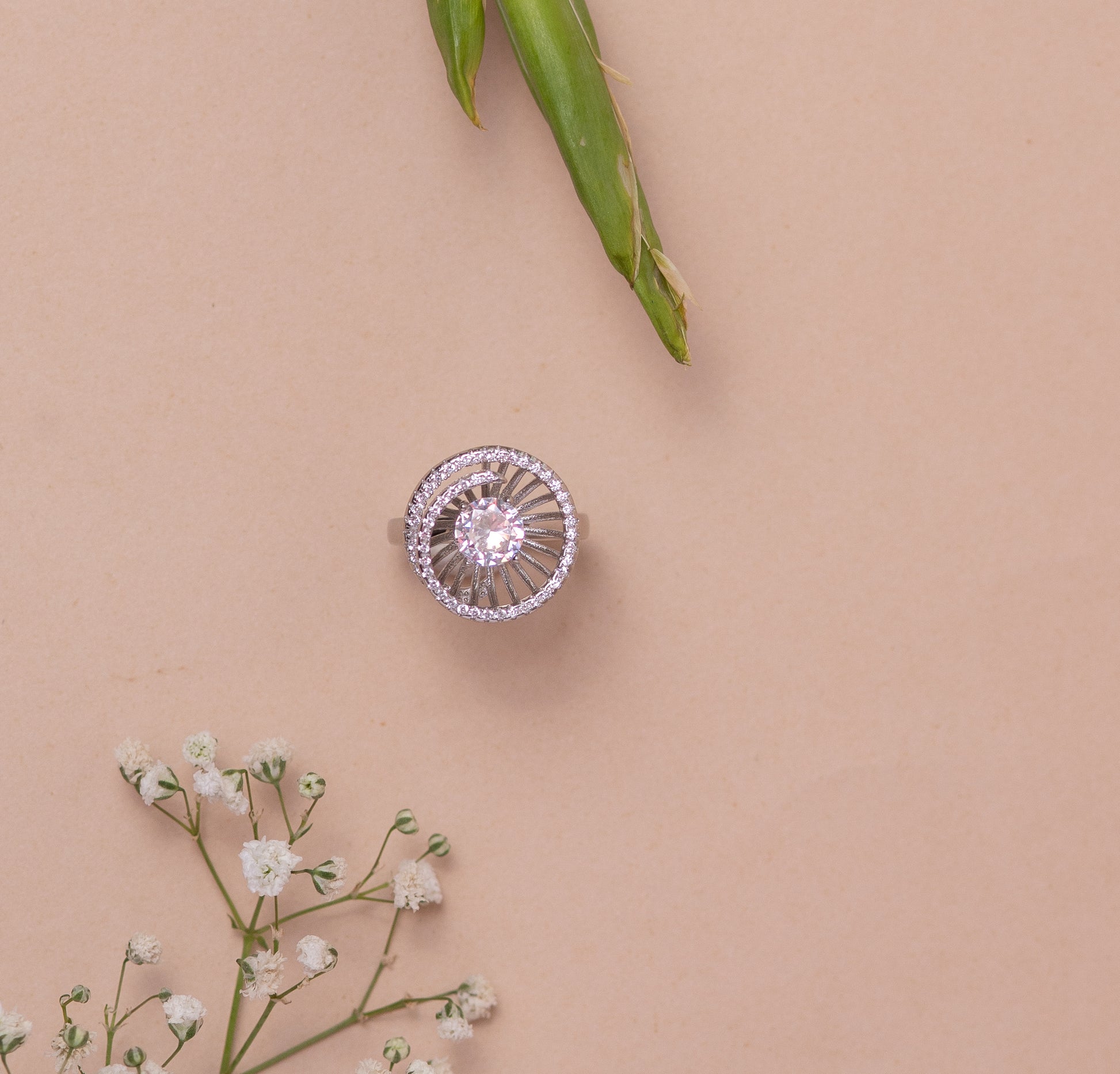 Sold outFloral White Stone Silver Ring